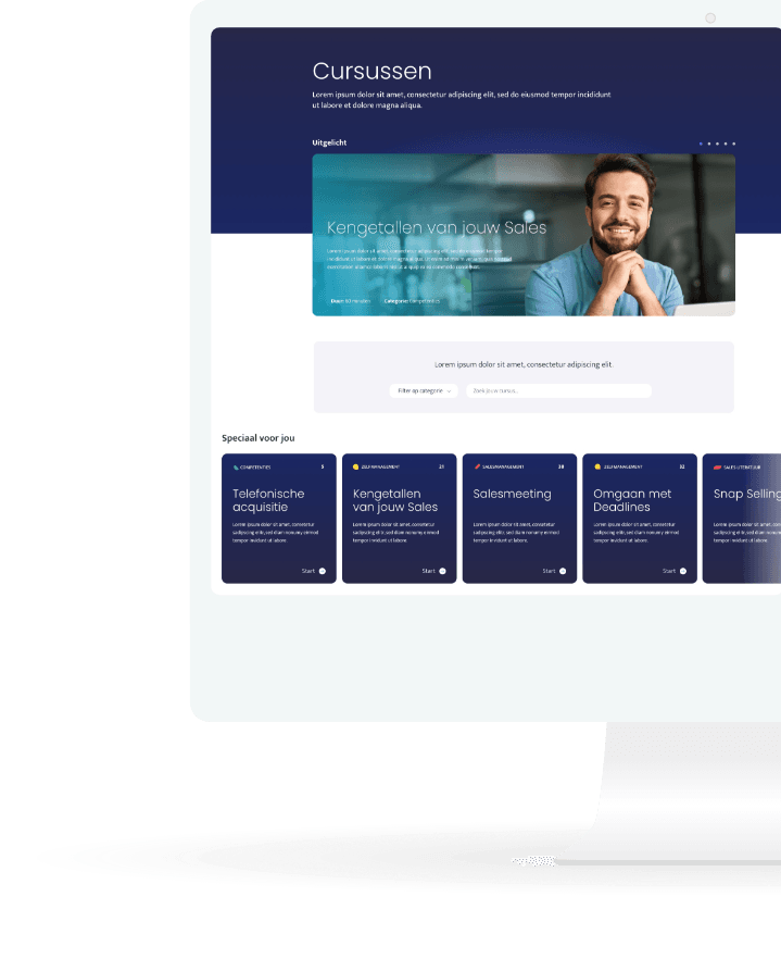 Het platform en de bijbehorende dienstverlening kunnen volledig worden afgestemd op jullie organisatie, branche en commerciële context. Zo sluit het leertraject naadloos aan op de dagelijkse praktijk en wordt de impact op gedrag en resultaat maximaal.